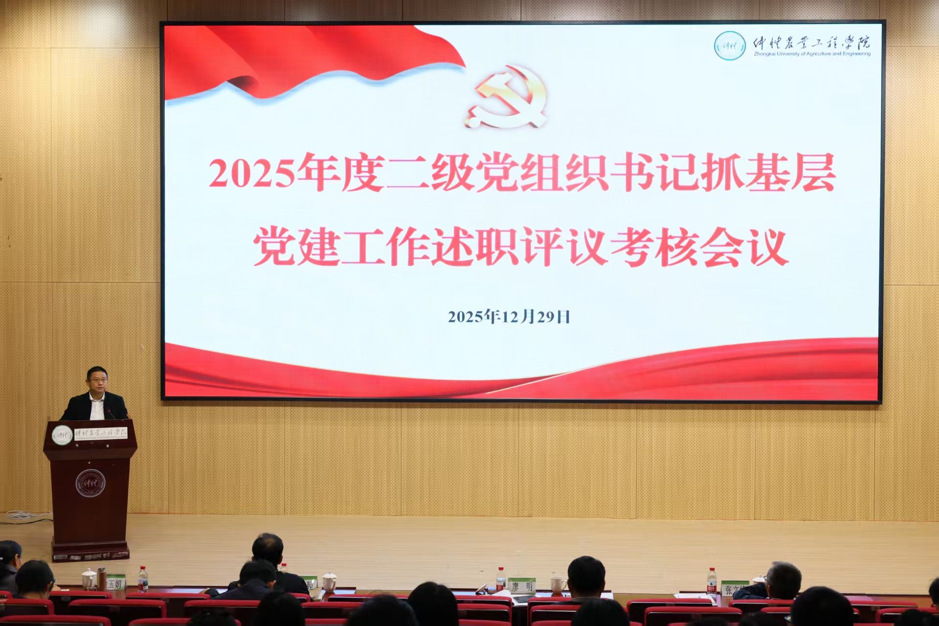 为深入学习贯彻习近平新时代中国特色社会主义思想,认真落实党的二十大和二十届历次全会精神,落实省委“1310”具体部署,推进实施广东省基层党建强基工程行动计划,不断提升基层党建工作水平,12月29日,学校在白云校区德新楼一楼学术报告厅召开2025年度二级党组织书记抓基层党建工作述职评议考核会议。学校领导班子成员、学校党委委员、纪委委员、党委部门负责人、二级党组织书记及基层党员代表参加会议,学校党委副书记、校长廖明进行点评并讲话,会议由学校党委常委、副校长林俊睦主持。